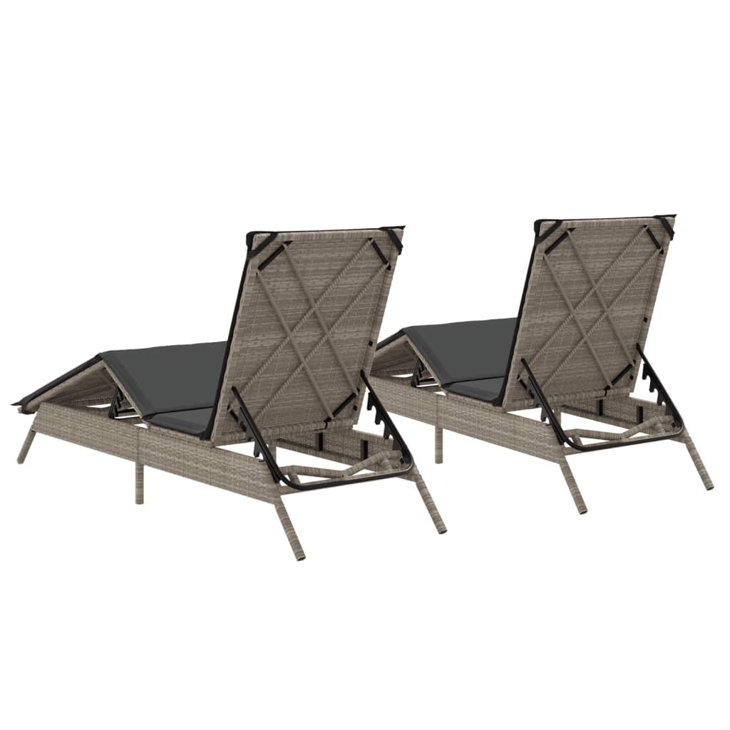 Zahradní lehátka s poduškami 2 ks světle šedá polyratan 3261583