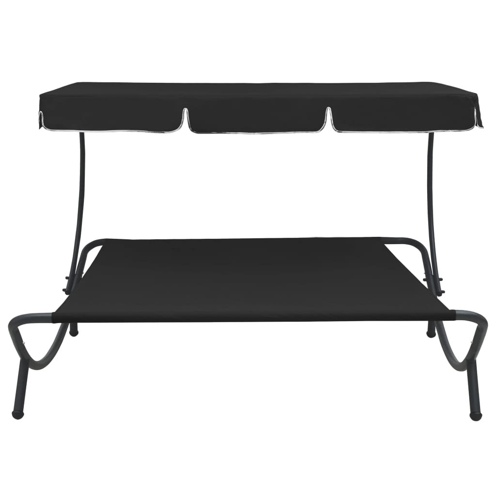 Lehátko je vyrobeno z materiálu oxford odolného proti povětrnostním vlivům a lze jej používat venku po celý rok. Ocelový rám s práškovým nástřikem dodá výbornou stabilitu a zajistí dlouhou životnost a vynikající odolnost. Stříška z vodoodpudivého polyesteru vám bezpochyby poskytne optimální zážitek z ležení. Venkovní postel pro dvě osoby vám poskytne stín, neboť je vybavena velkým baldachýnem.