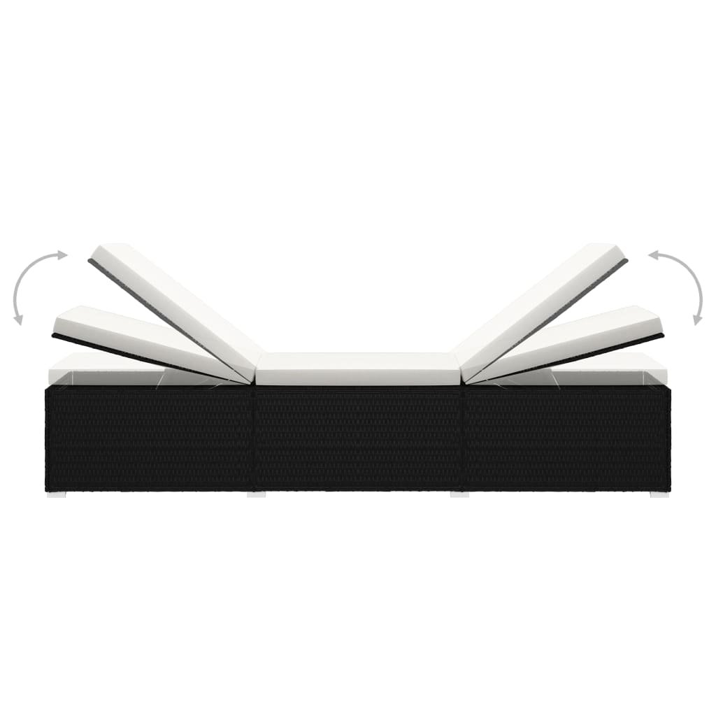Zahradní lehátko s poduškou a čajovým stolkem polyratan černé 317111