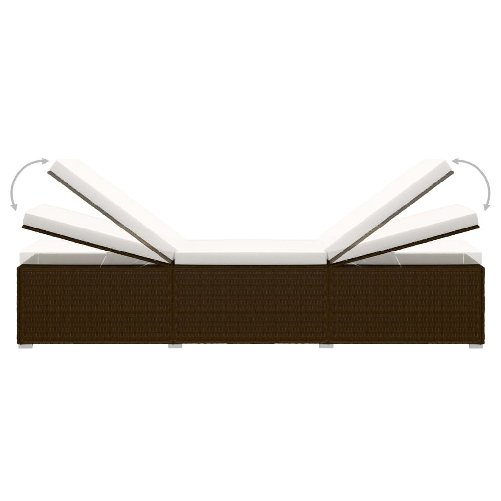 Zahradní lehátko s poduškou a čajovým stolkem polyratan hnědé 46226