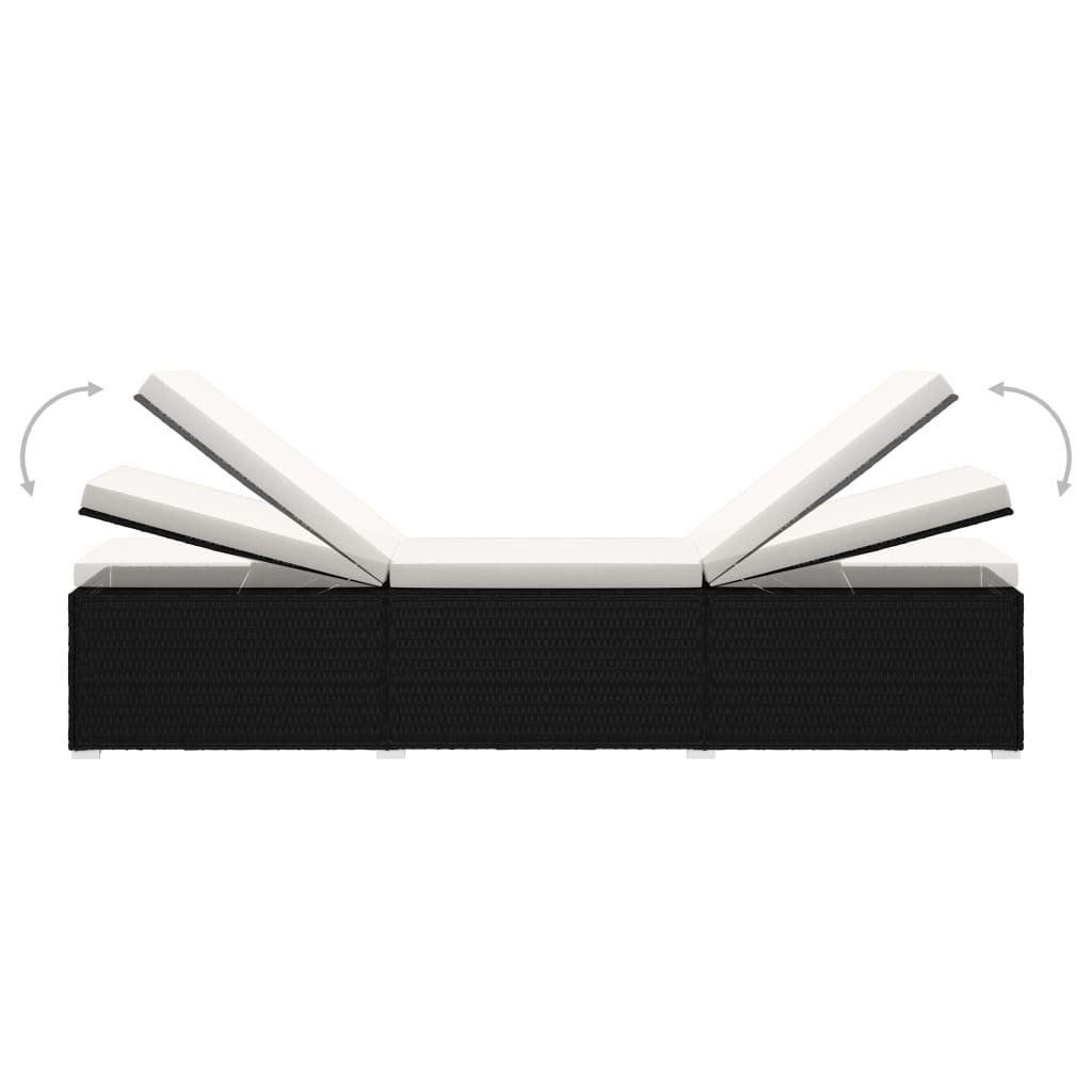 Zahradní lehátko s poduškou a čajovým stolkem polyratan krémové 46225