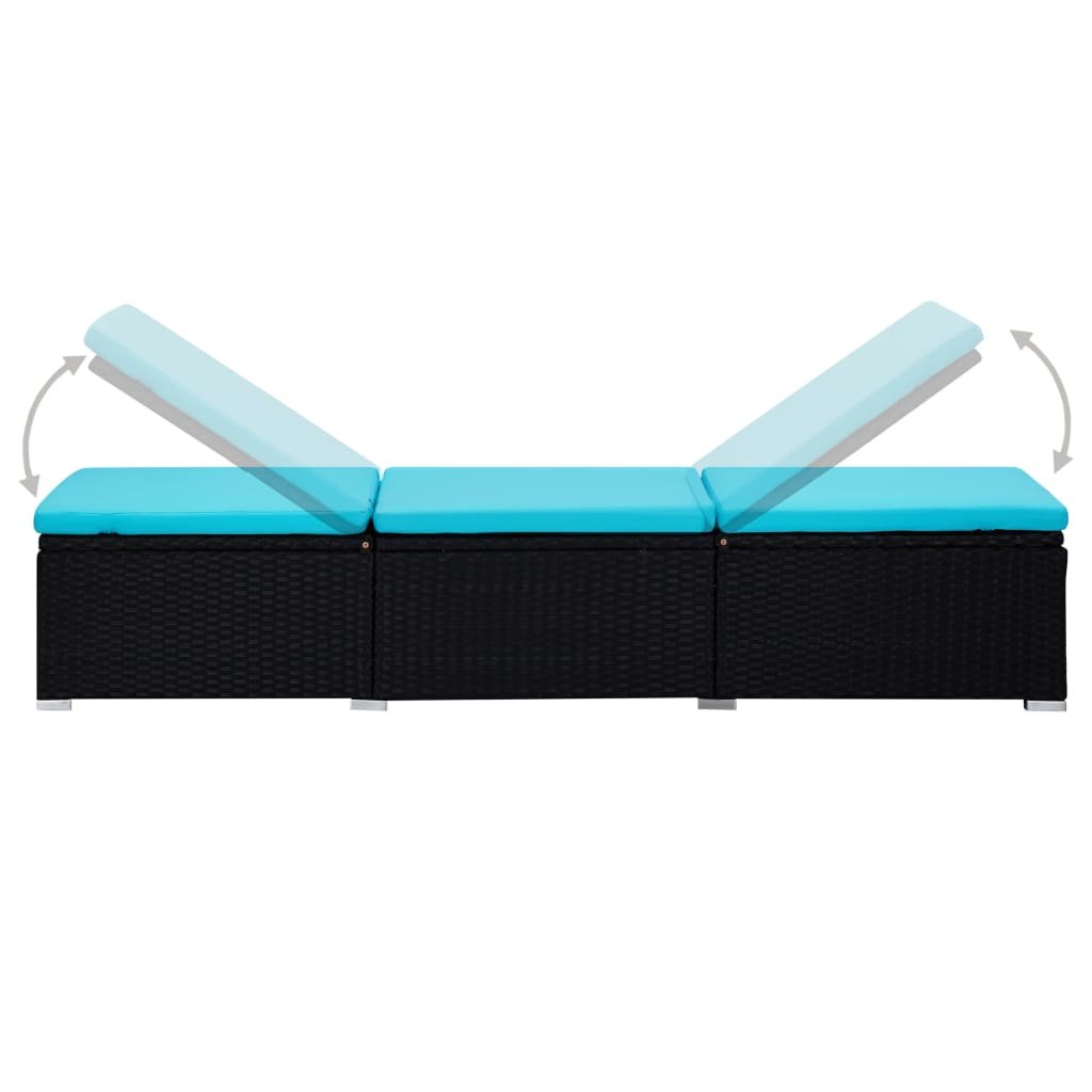 Zahradní lehátko s poduškou a čajovým stolkem polyratan modré 310227
