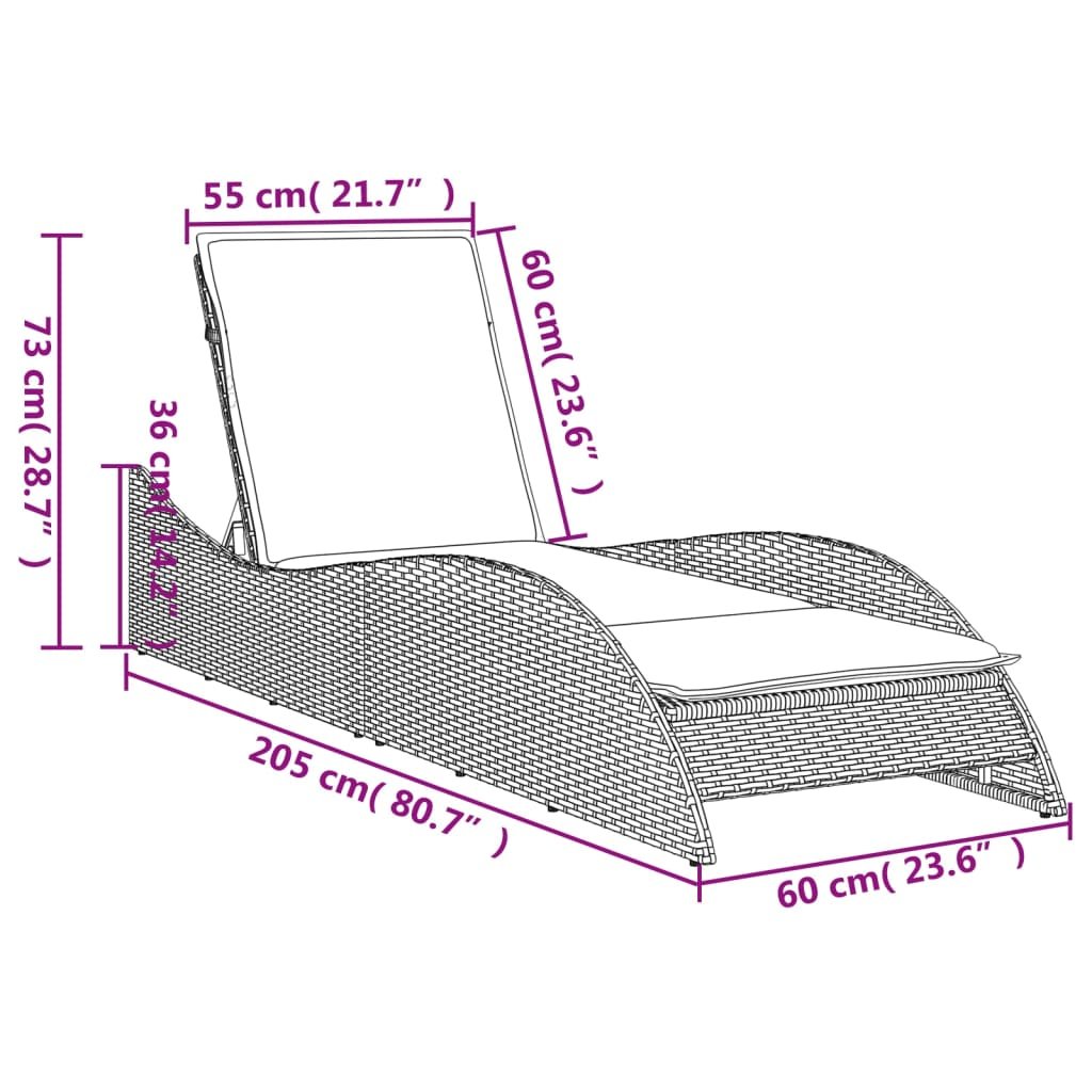 Zahradní lehátko s poduškou béžové 60 x 205 x 73 cm polyratan 368282