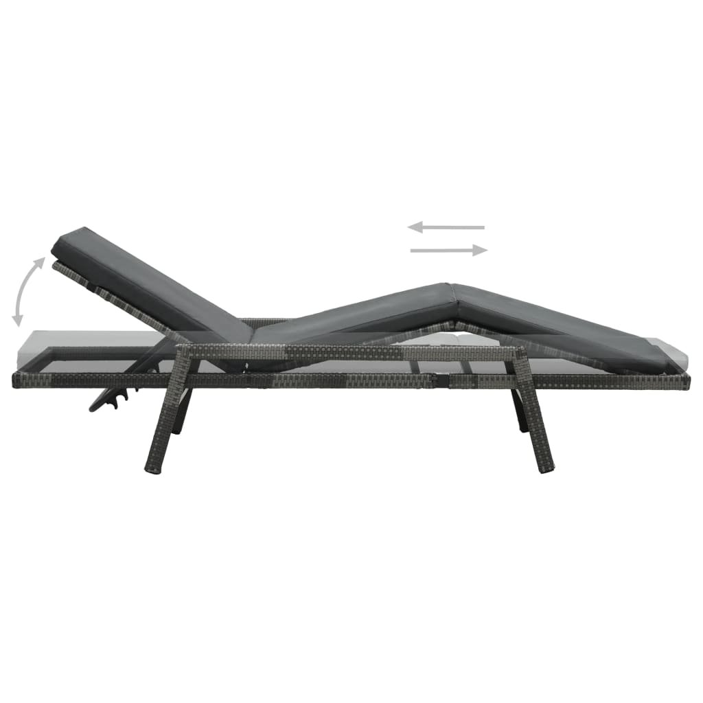 Zahradní lehátko s poduškou polyratan šedé 48147