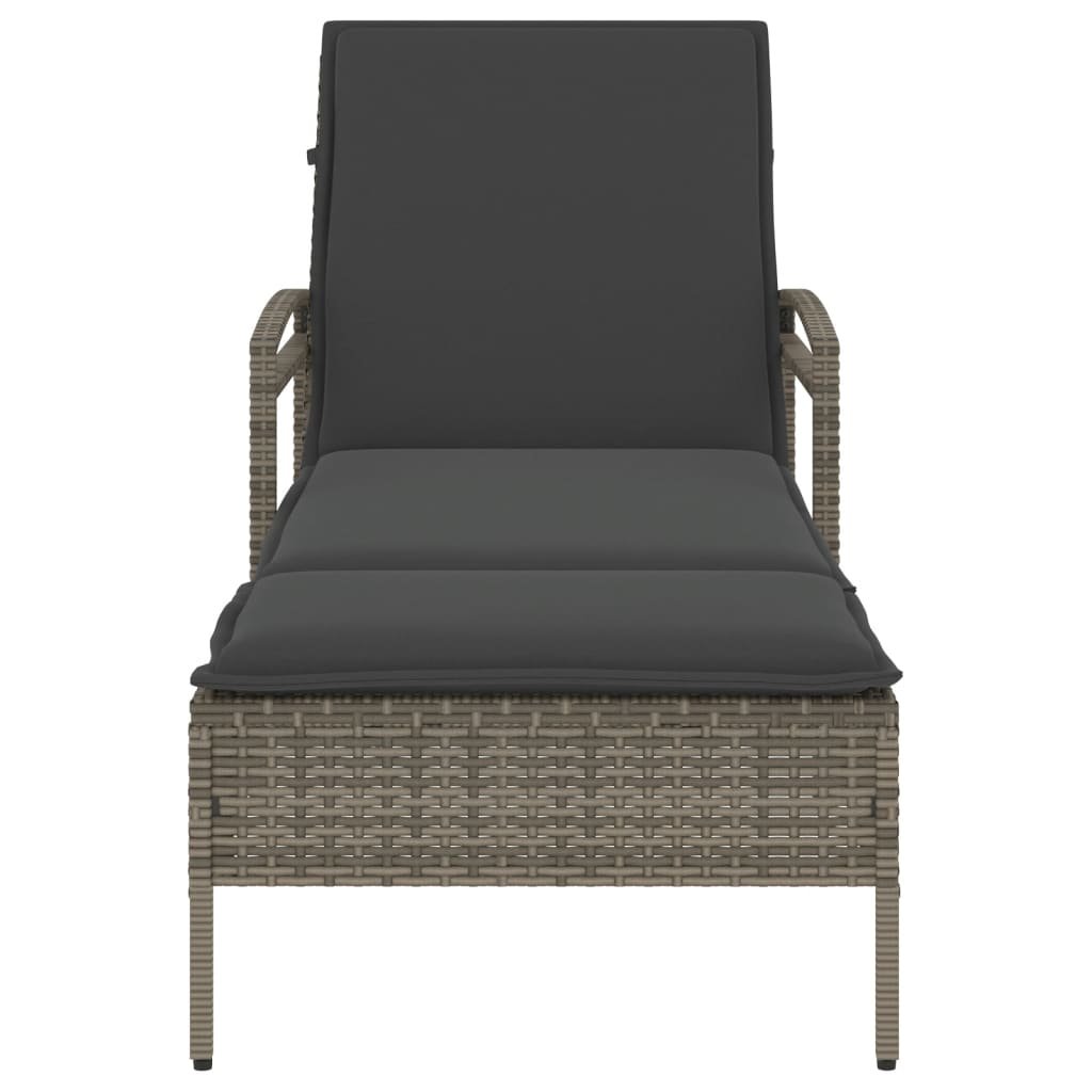 Zahradní lehátko s poduškou šedé 63 x 200 x 81 cm polyratan 368301