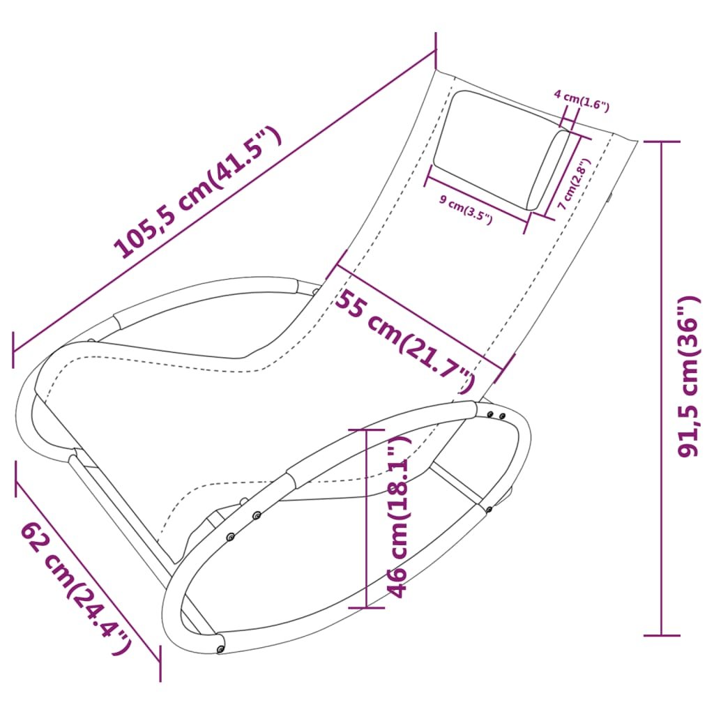 Ocelový rám dodává zahradnímu lehátku na robustnosti a stabilitě. Jelikož je lehátko zhotoveno z voděodolné a prodyšné textilenové tkaniny, je mimořádně odolné, snadno se udržuje a je vhodné pro každodenní venkovní použití. Houpací křeslo s ergonomickým designem je vybaveno zakřiveným opěradlem a područkami, takže vám poskytne optimální pohodlí při sezení. Odnímatelná opěrka hlavy navíc nabízí vynikající oporu pro vaši hlavu a krk.