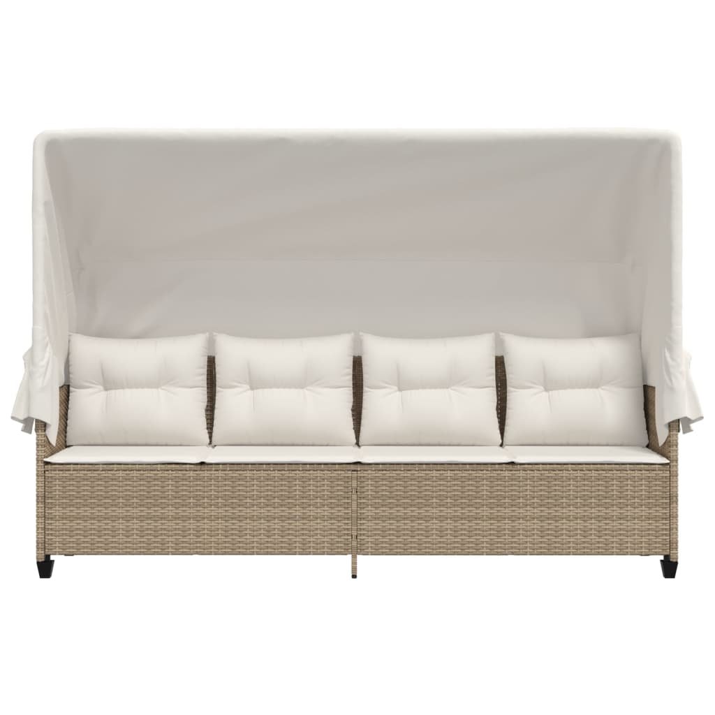 Zahradní lehátko se stříškou a poduškami béžové polyratan 368339