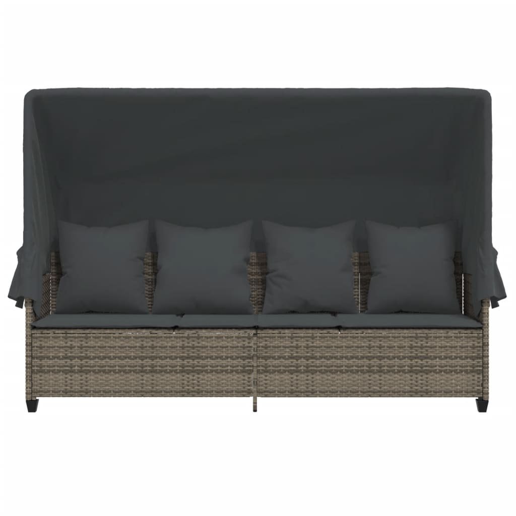 Zahradní lehátko se stříškou a poduškami šedé polyratan 368355
