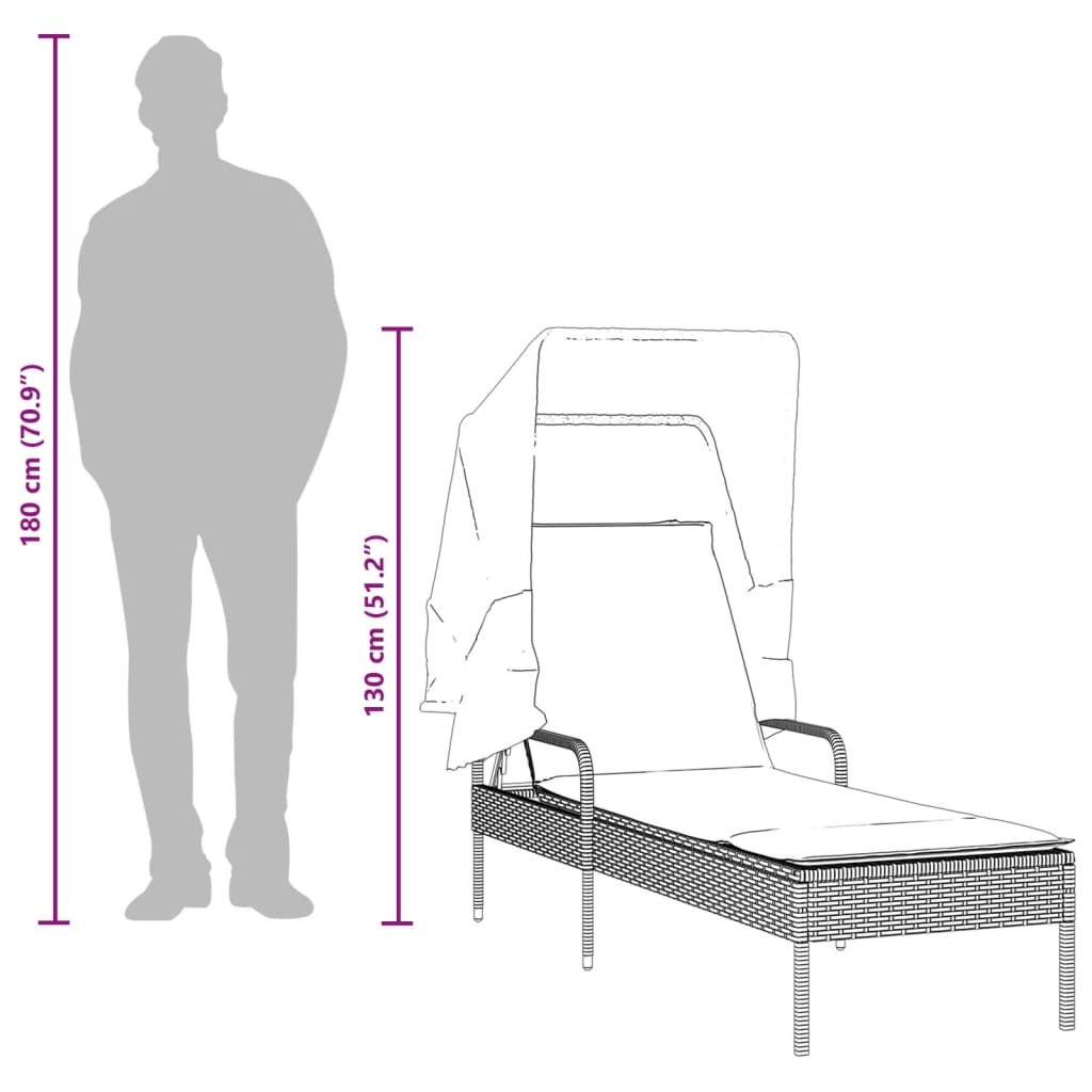 Zahradní lehátko se stříškou černé polyratan 368188
