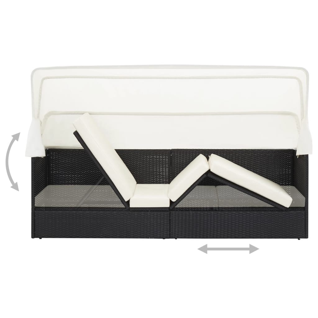 Zahradní pohovka s baldachýnem černá polyratan 49393
