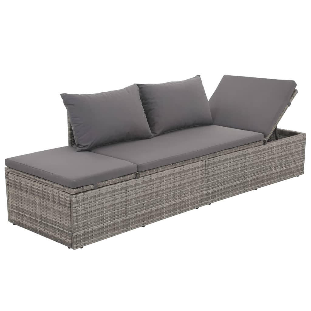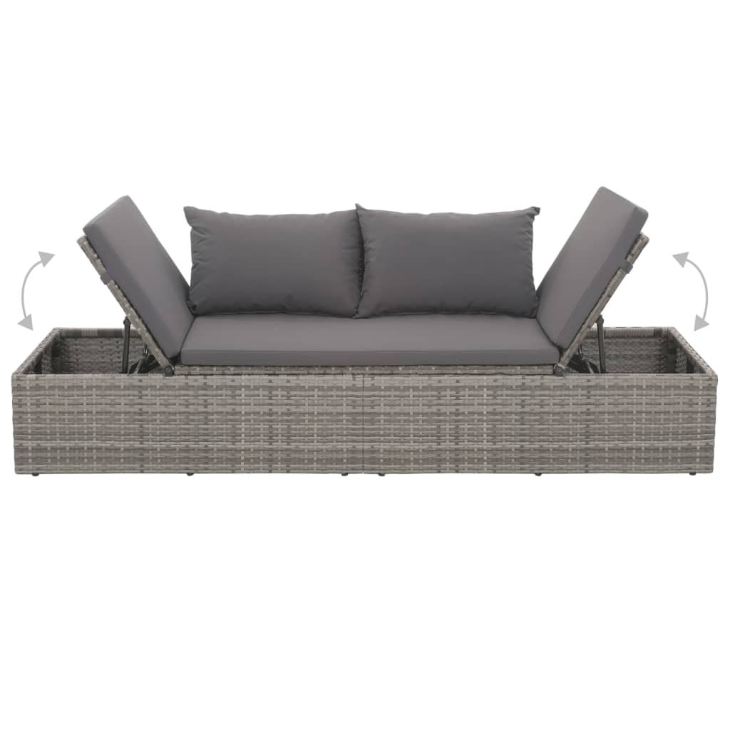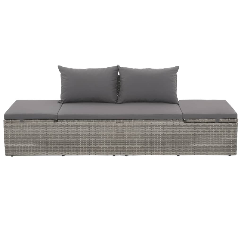 Zahradní postel s poduškou a polštáři polyratan šedá 317110