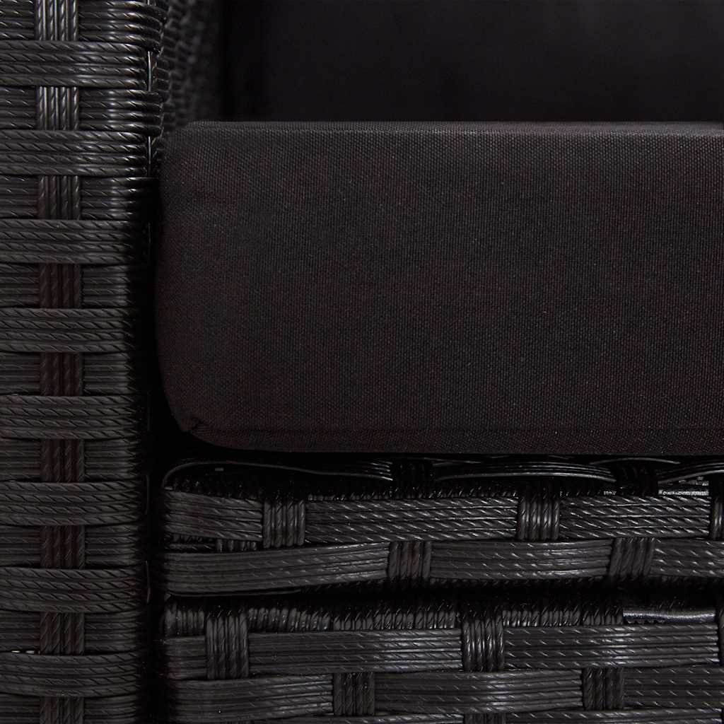 - Materiál: polyratan, textil (100% polyester), práškově lakovaná ocel