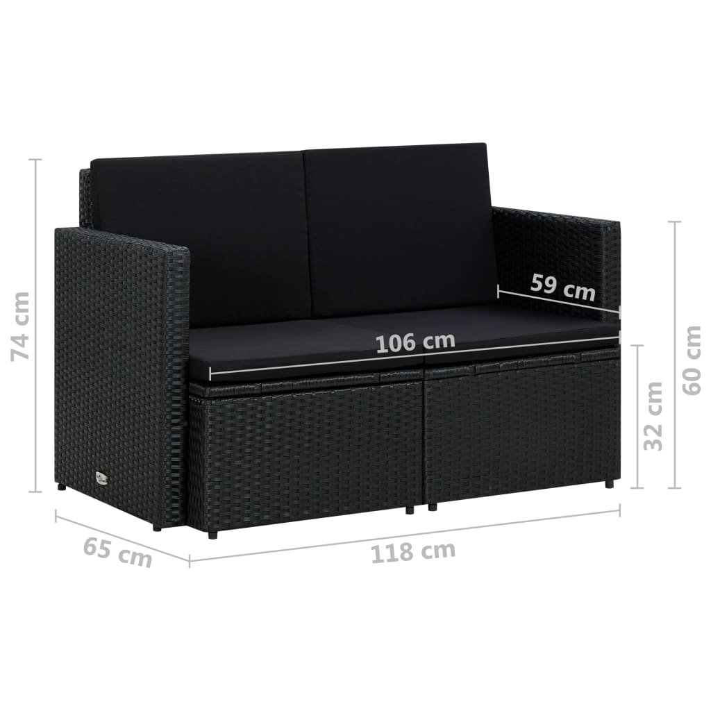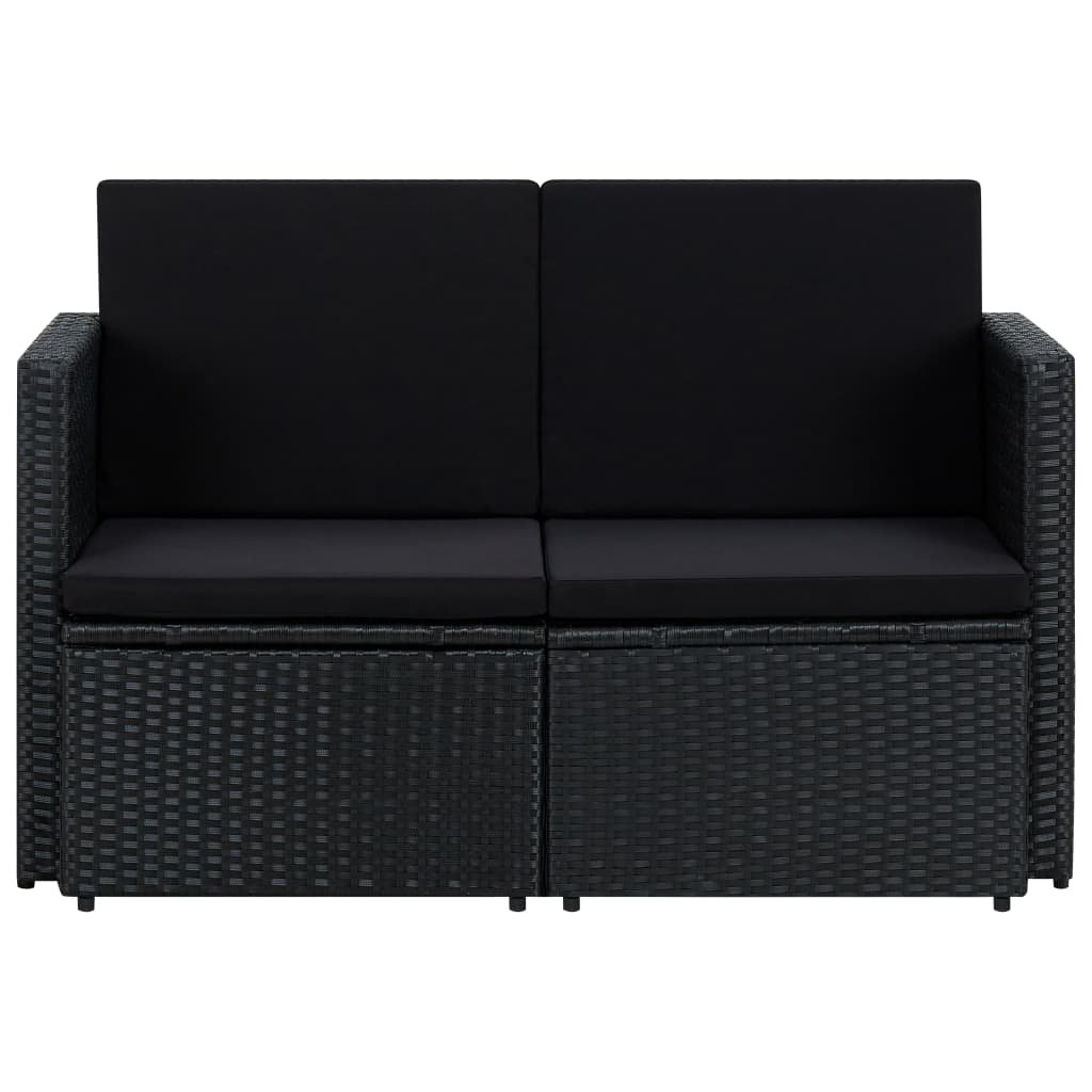 2místná zahradní pohovka s poduškami černá polyratan 45784