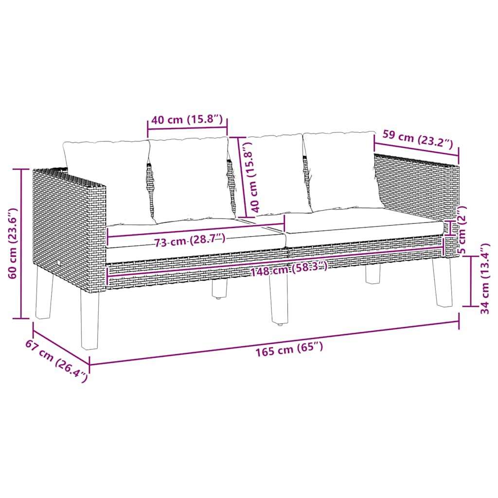 2místná zahradní pohovka s poduškami polyratan béžová 310215