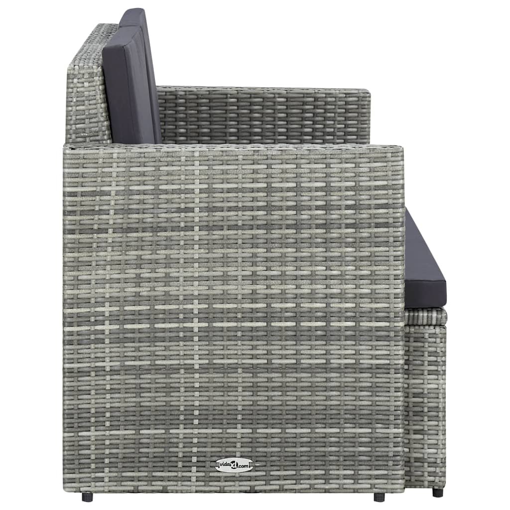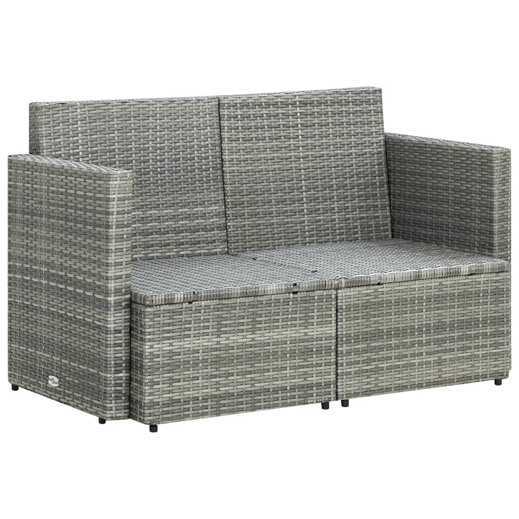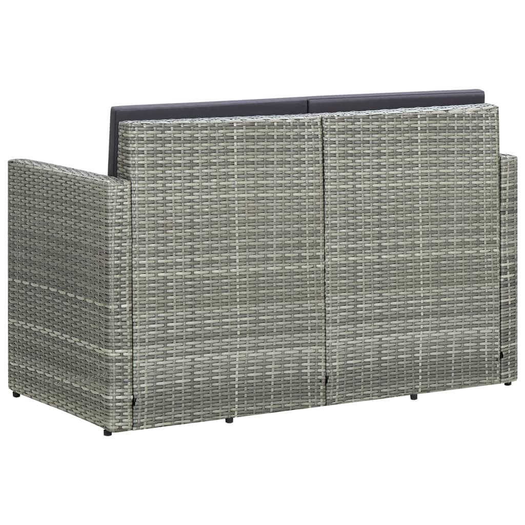 2místná zahradní pohovka s poduškami šedá polyratan 45783