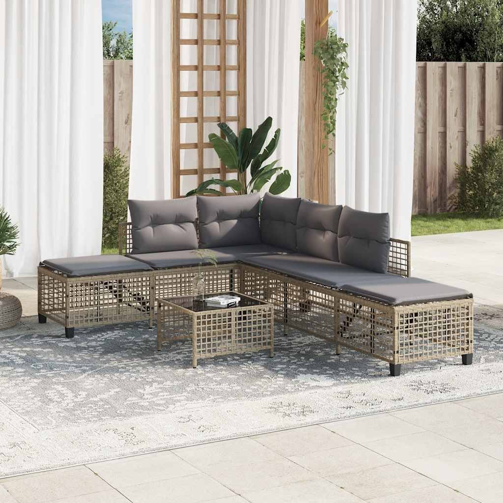 3dílná rohová sedací souprava s poduškami mix béžové polyratan 365448
