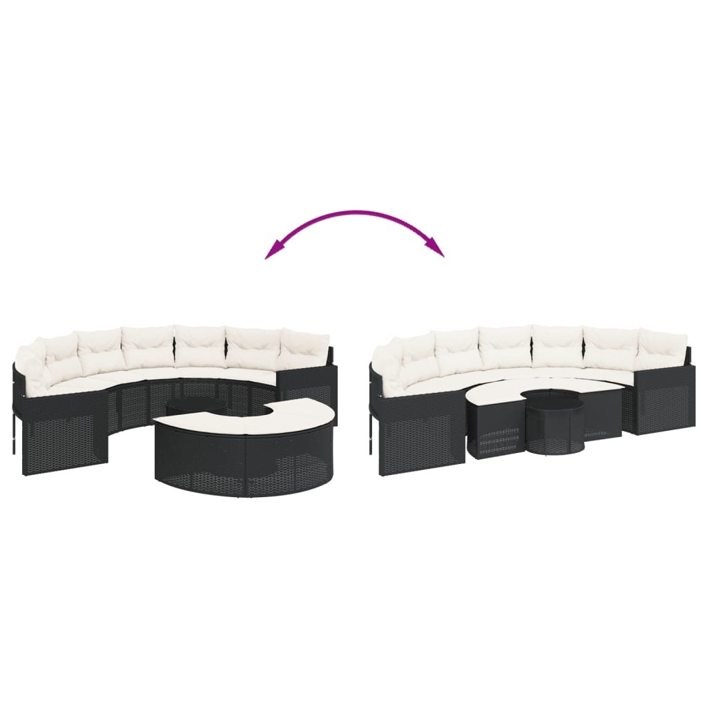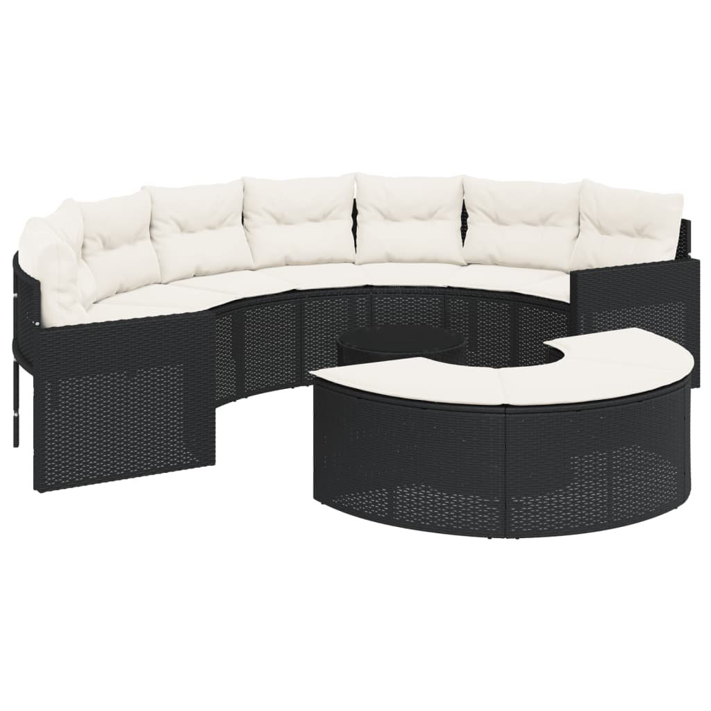 3dílná zahradní sedací souprava půlkruhová černá polyratan 3262065