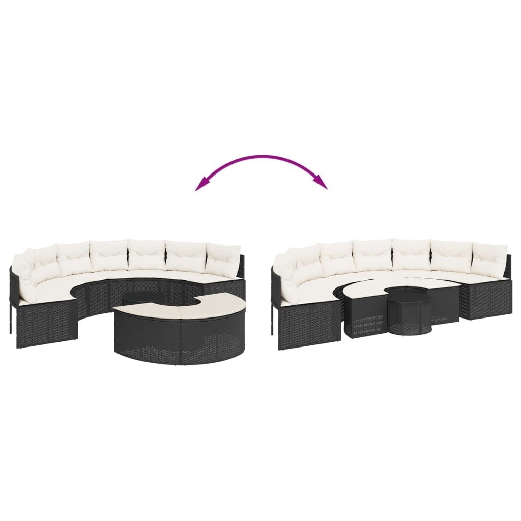 3dílná zahradní sedací souprava půlkruhová černá polyratan 3262074