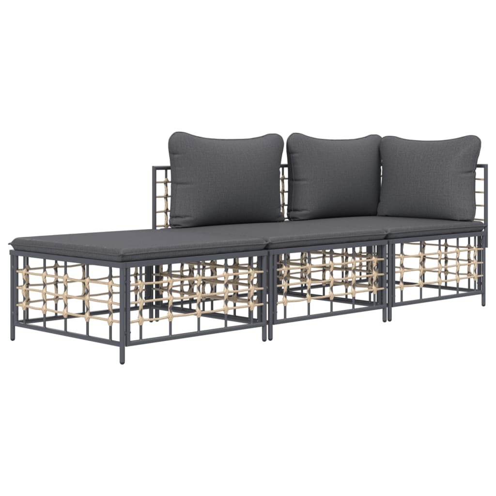 3dílná zahradní sedací souprava s poduškami antracit polyratan 3186725