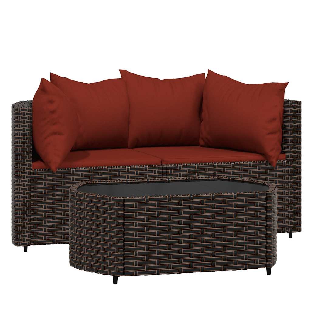 3dílná zahradní sedací souprava s poduškami hnědá polyratan 319823