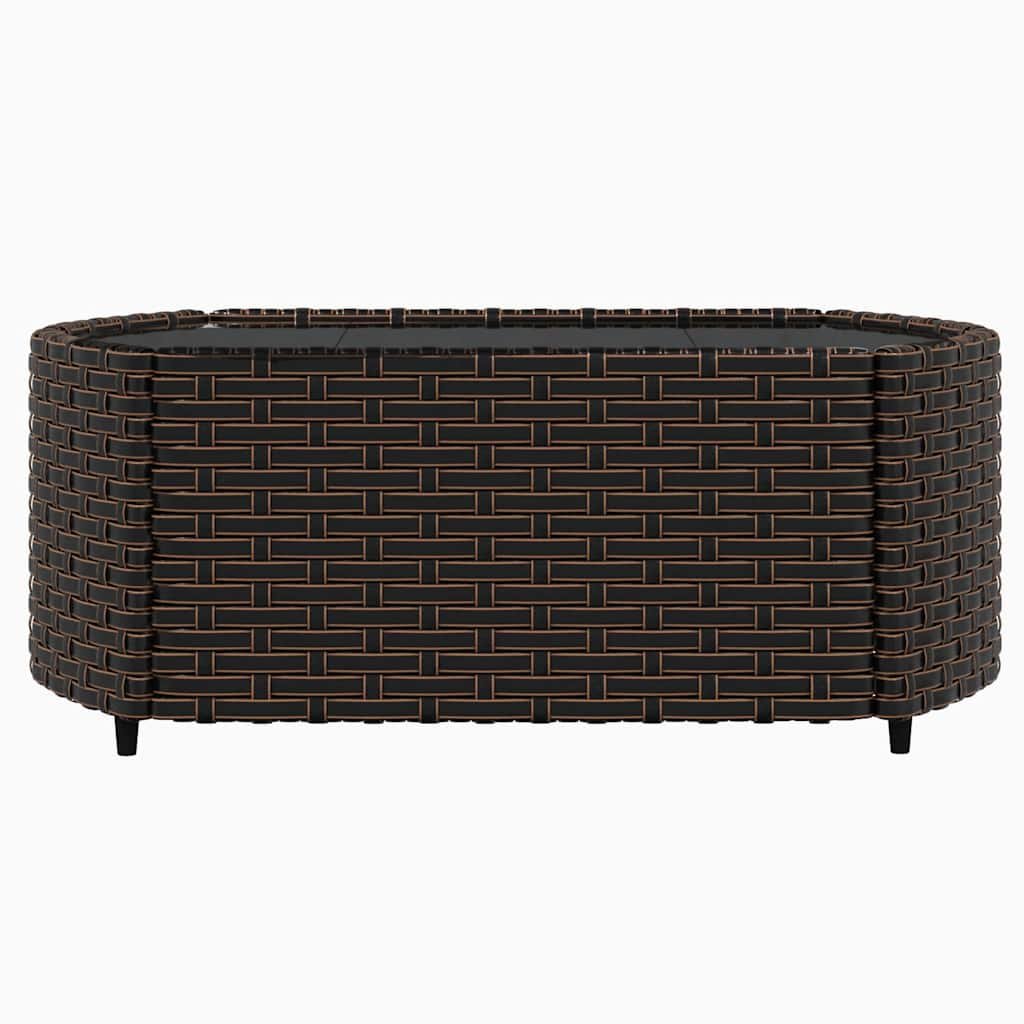 - Materiál: PE ratan, práškově lakovaná ocel, tkanina (100% polyester), tvrzené sklo