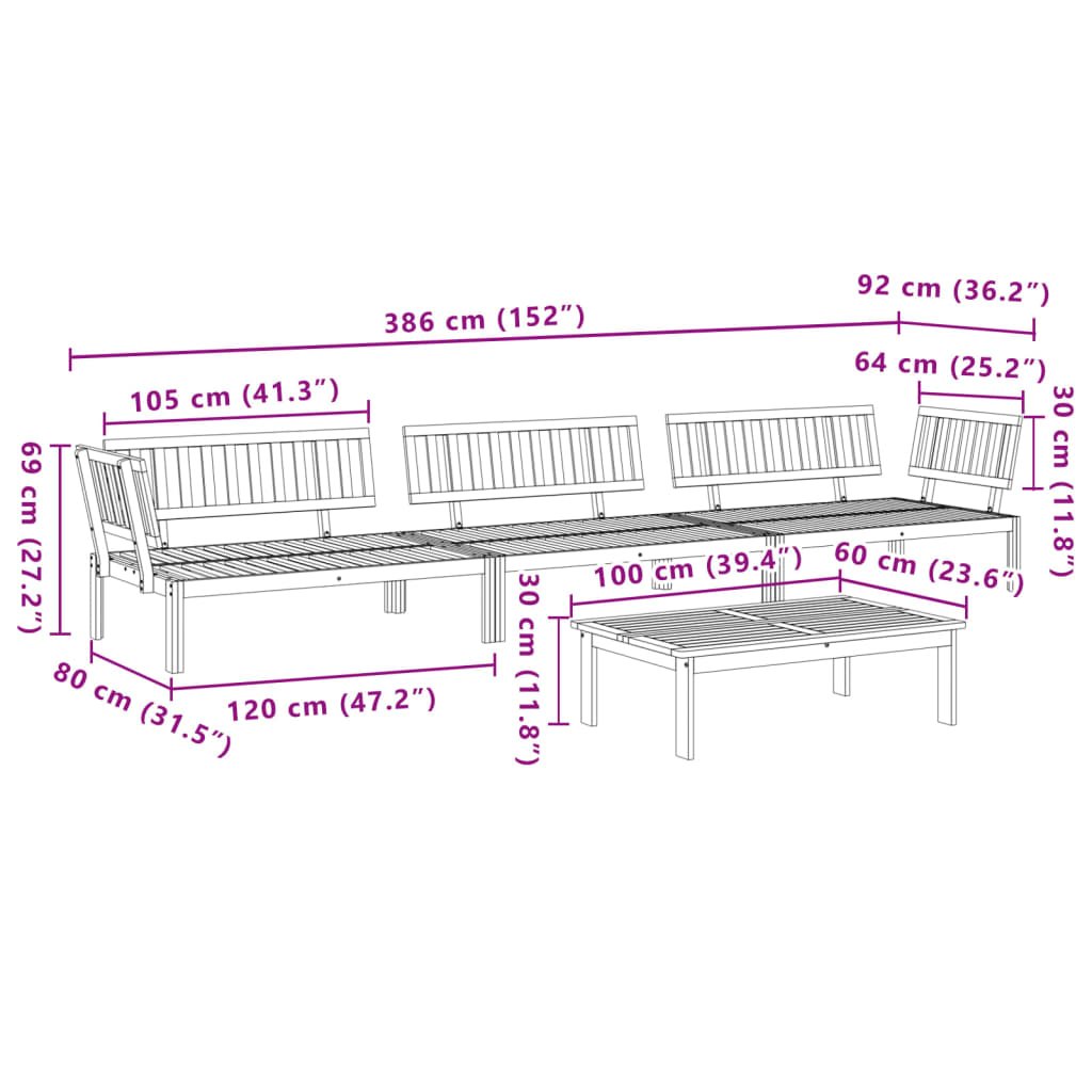 4dílná zahradní paletová sedací souprava masivní akáciové dřevo 3209435