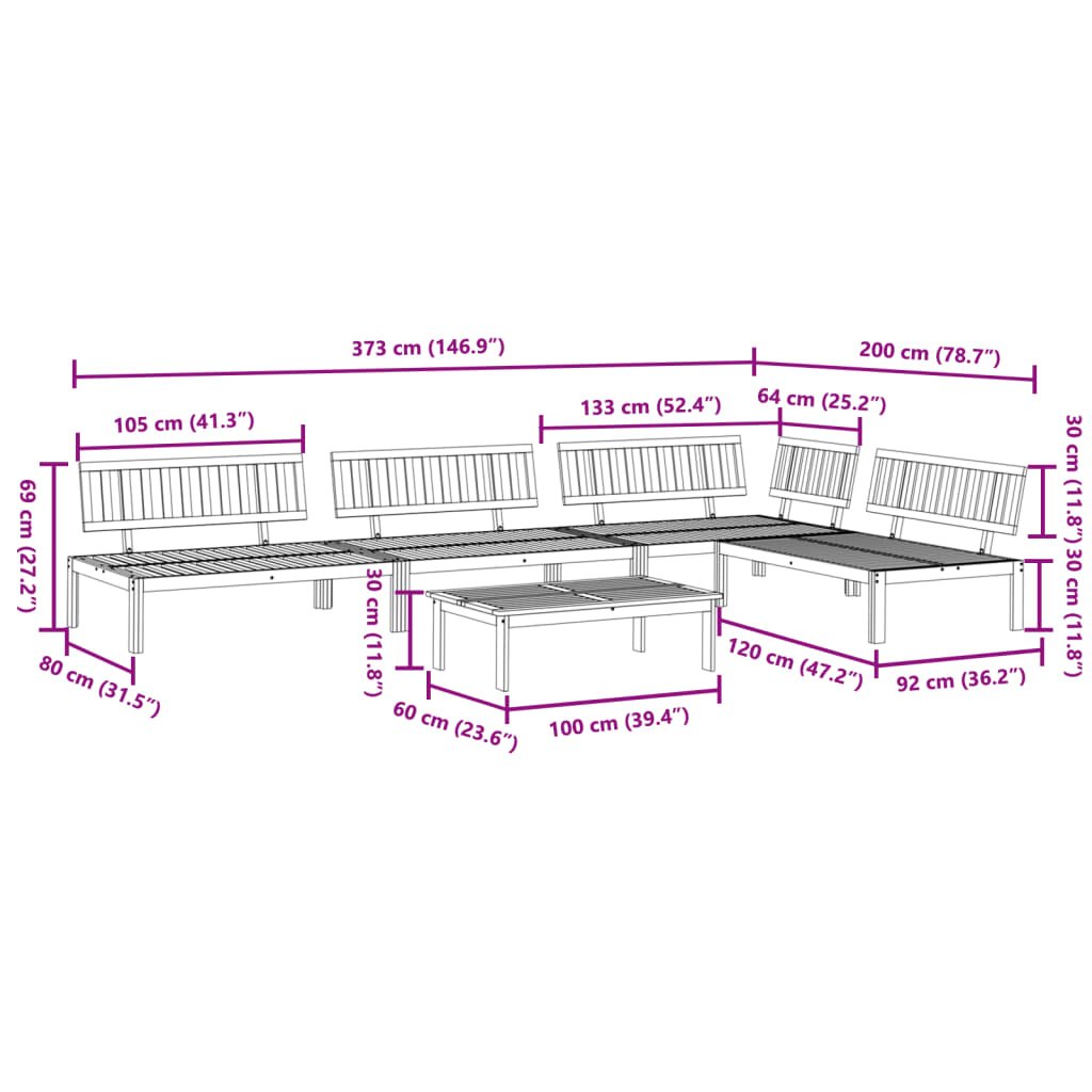 5dílná zahradní paletová sedací souprava masivní akáciové dřevo 3209304
