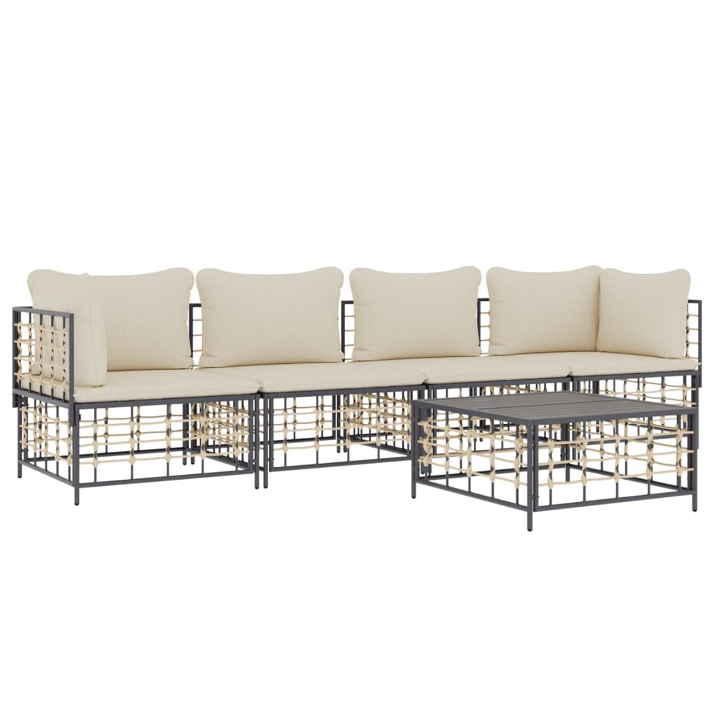 5dílná zahradní sedací souprava s poduškami antracit polyratan 3186700