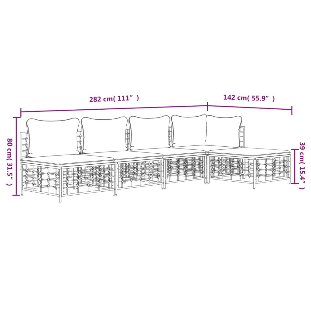 5dílná zahradní sedací souprava s poduškami antracit polyratan 3186734