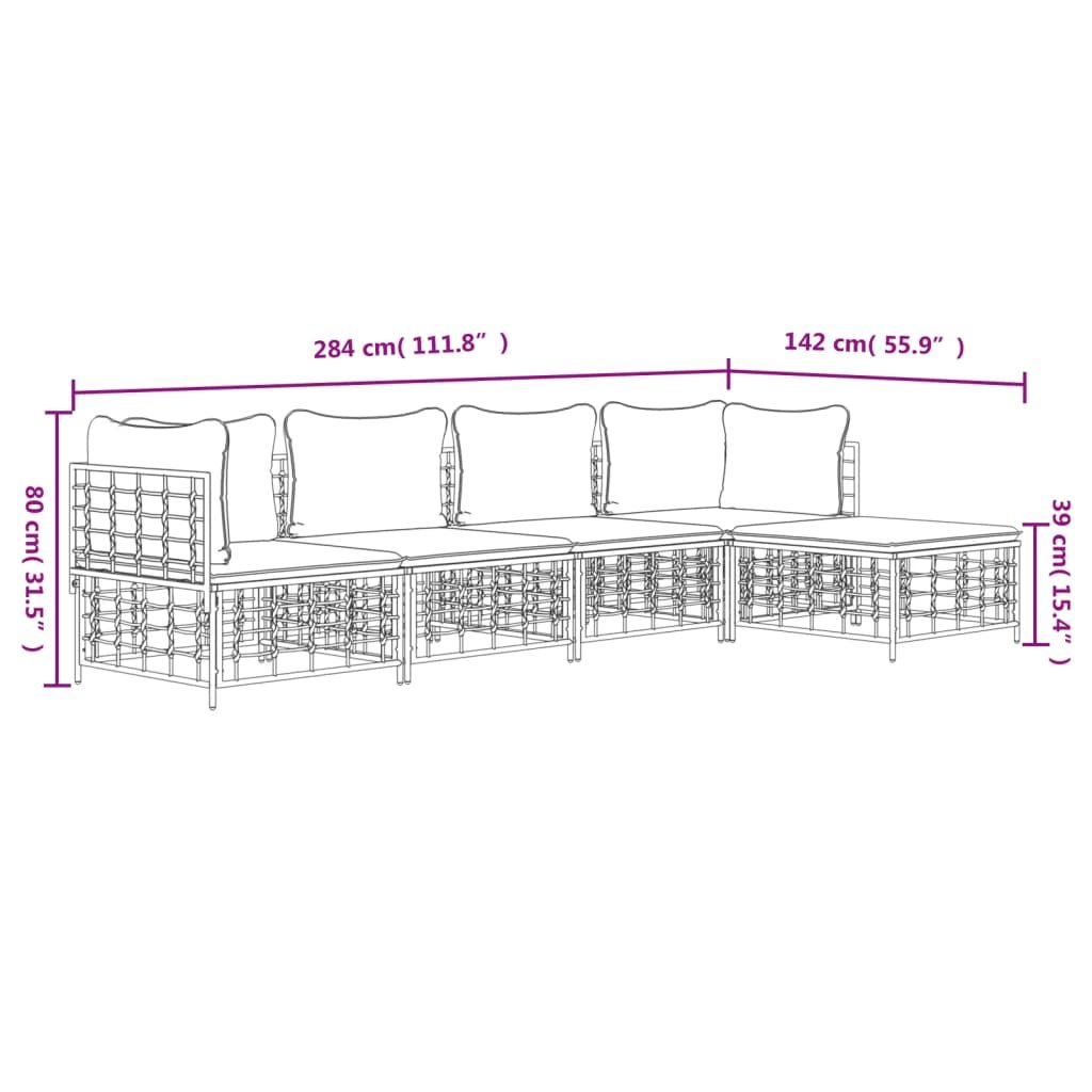 5dílná zahradní sedací souprava s poduškami antracit polyratan 3186742