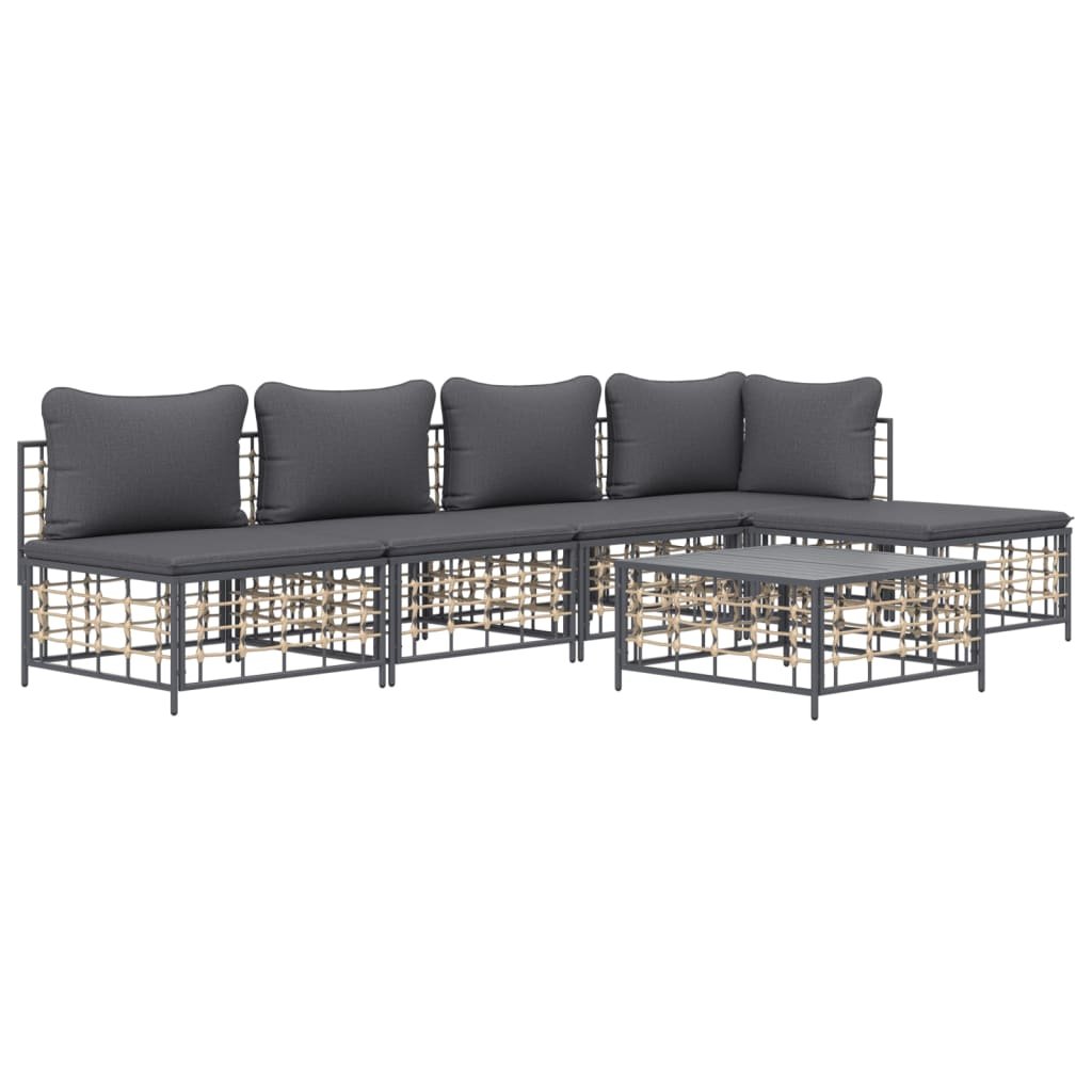 6dílná zahradní sedací souprava s poduškami antracit polyratan 3186737