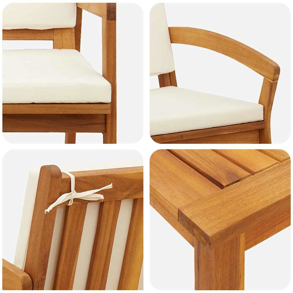 - Masivní akáciové dřevo: Bistro souprava je většinou z masivního akáciového dřeva. Tohle dřevo bylo vybrané pro svou sílu a odolnost vůči počasí, a jeho přirozená krása dodává každému prostoru šmrnc. Její robustní konstrukce a pěkná struktura dělají z ní skvělou volbu pro nábytek, který má něco vydržet.