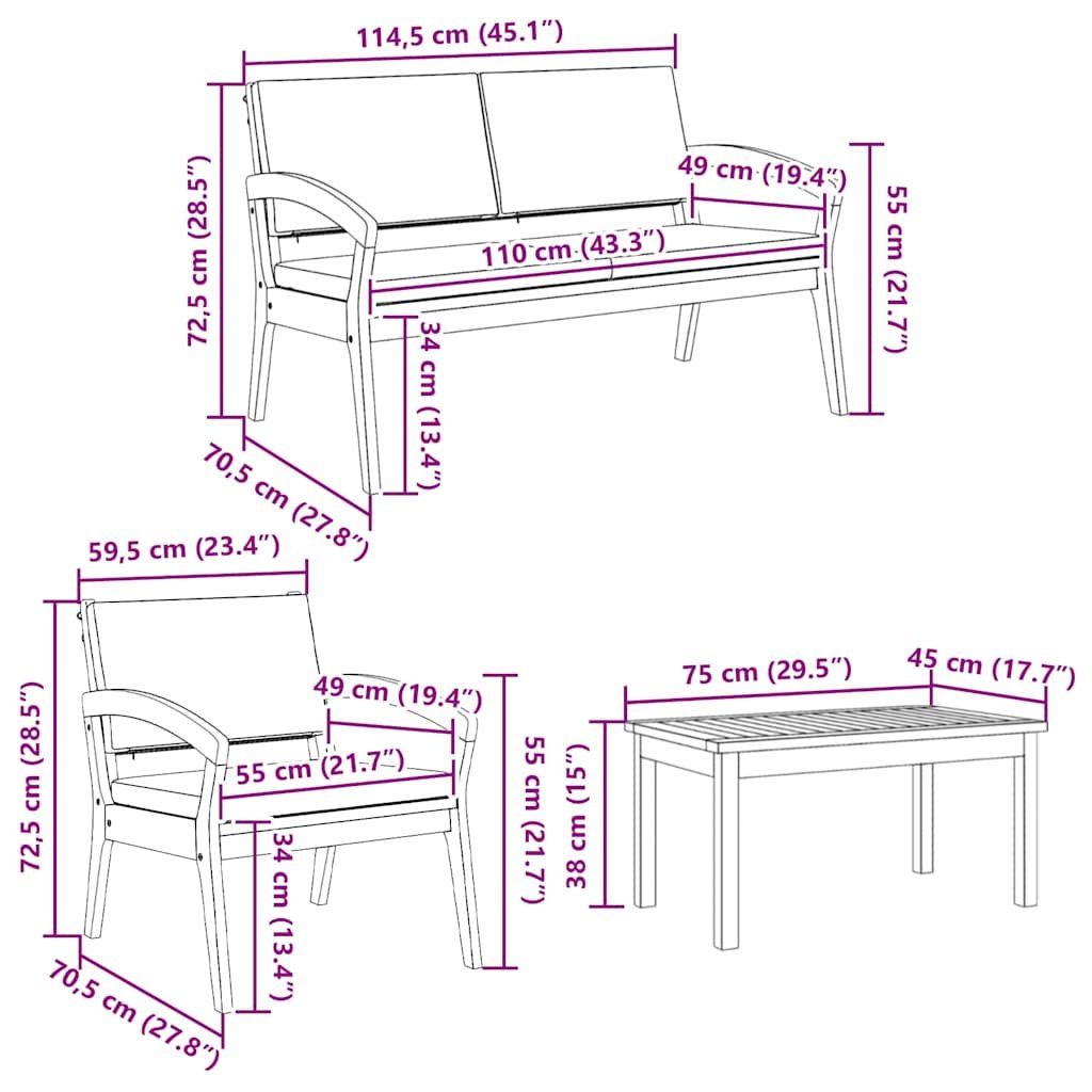 Tahle bistro souprava ti dává super možnost užít si venkovní sezení se svým stylovým a praktickým moderním designem. Je vyrobená z masivního akáciového dřeva, má silný obdélníkový rám, ideální na každou zahradu nebo terasu. Postavená tak, aby přežila jakékoliv počasí, tahle souprava je super na venkovní použití.