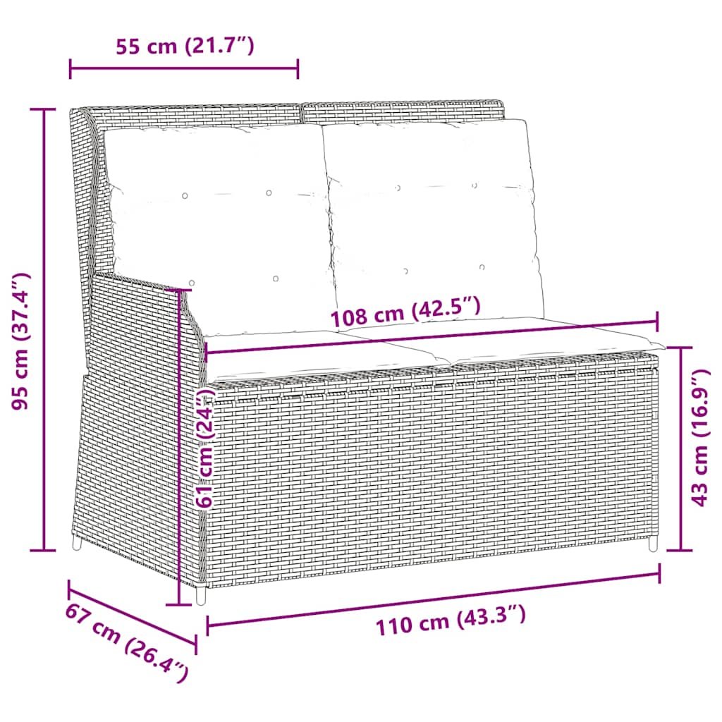 Polohovací zahradní lavice s poduškami černá polyratan 368946