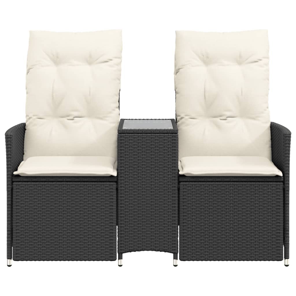 Polohovací zahradní pohovka 2místná se stolkem černá polyratan 365710