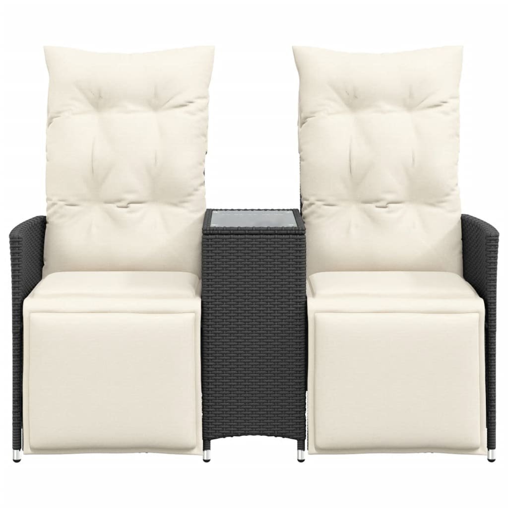 Polohovací zahradní pohovka 2místná se stolkem černá polyratan 365715
