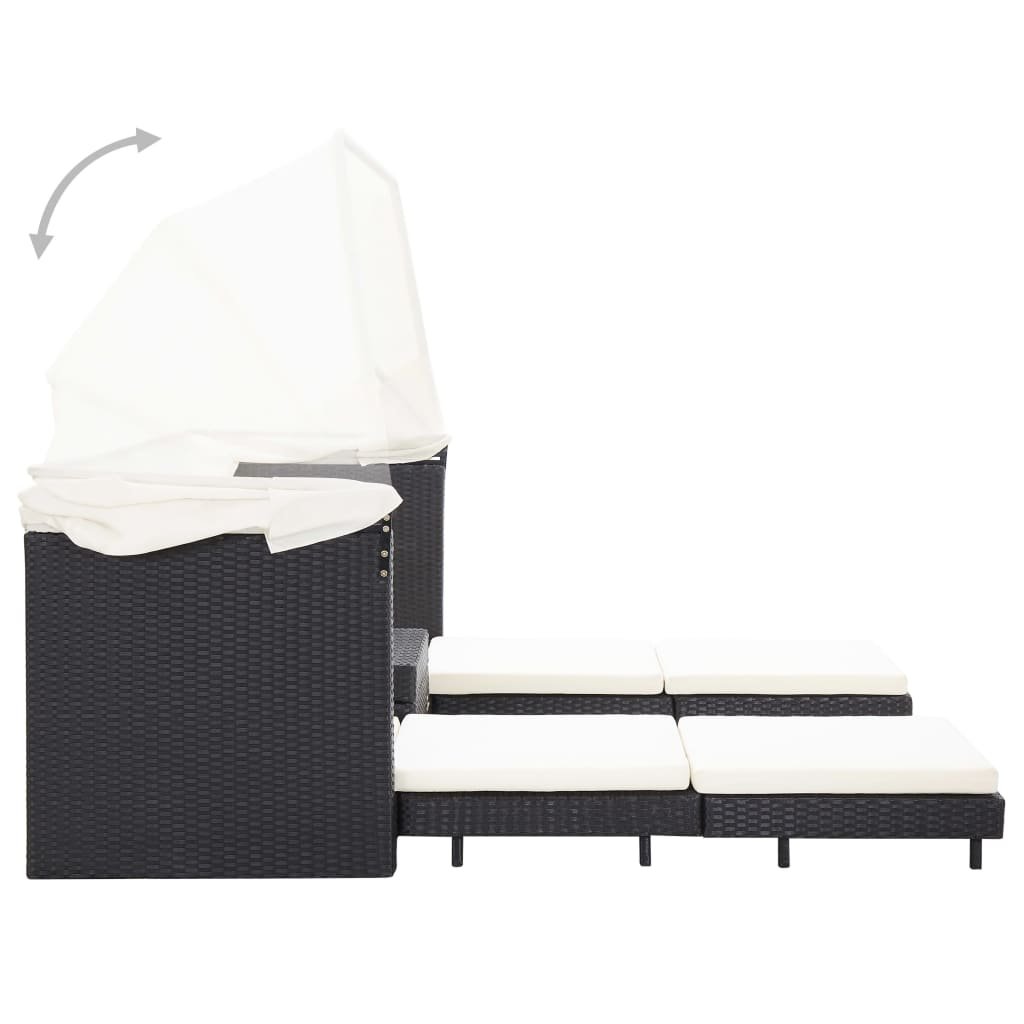 Rozkládací 3místná pohovka se stříškou polyratan černá 46075