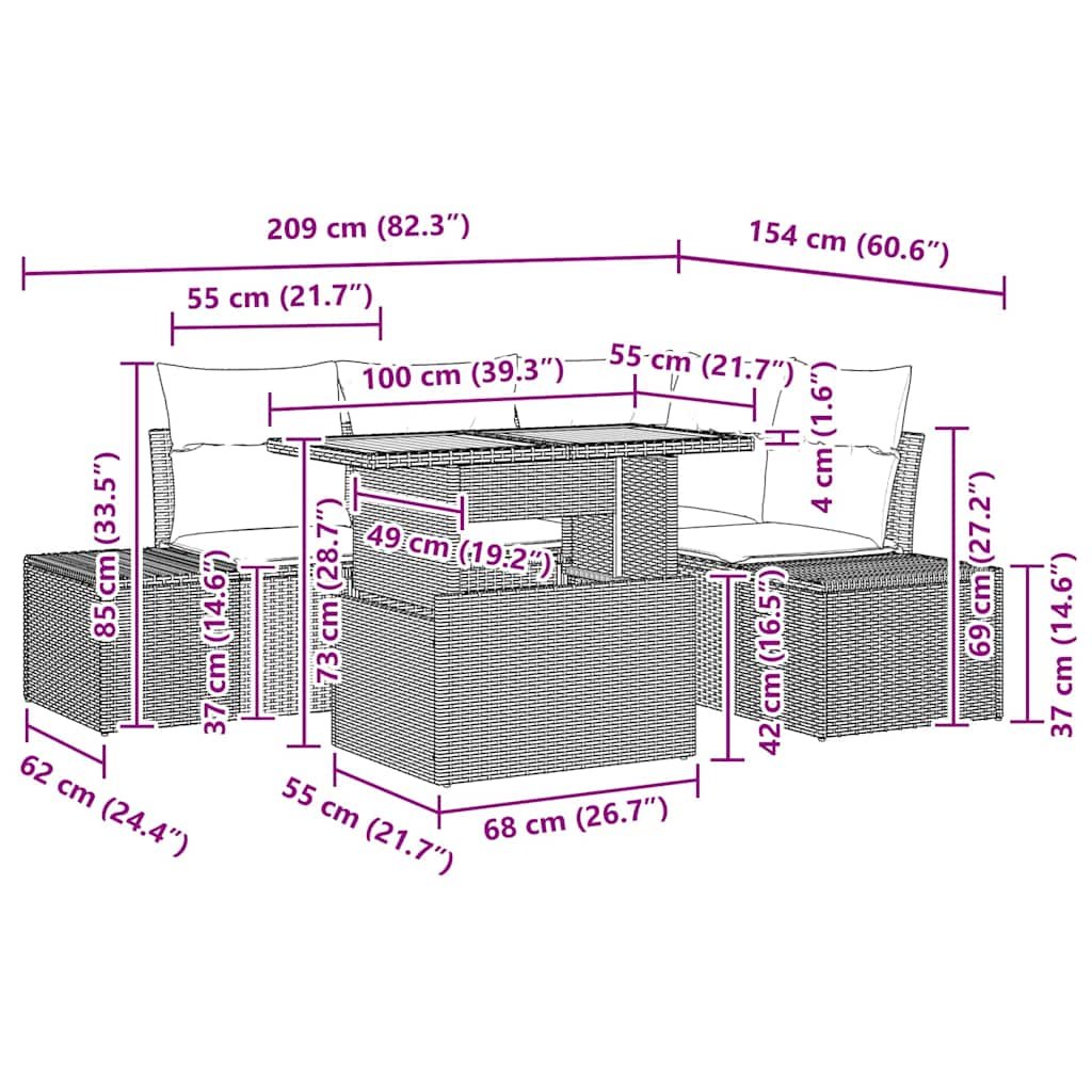 Sada zahradních pohovek 5 pcs Beige a šedá 100 x 55 x 73 cm 3349958