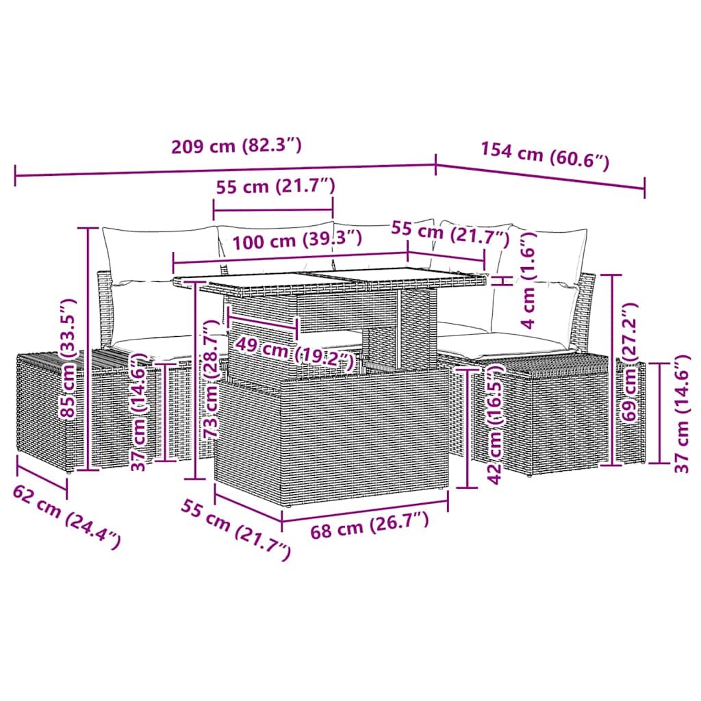 - Kvalitní materiály: Vyrobeno z odolného poly ratanu a práškově lakované oceli, tato sada kombinuje styl s funkčností. Poly ratan zajišťuje flexibilitu a sílu, zatímco ocelový rám poskytuje stabilní základnu. Tyto materiály jsou vybrány pro svou odolnost proti UV záření a opotřebení, což zajišťuje, že sada zůstává spolehlivá a atraktivní sezónu po sezóně.