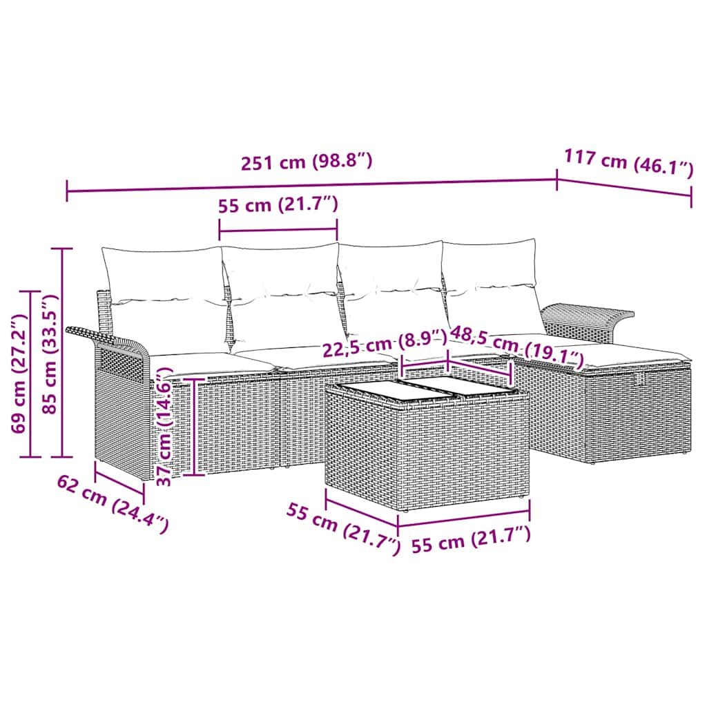 Sada zahradních pohovek 6 pcs Černá a krémová 251 x 117 x 85 cm 3358866