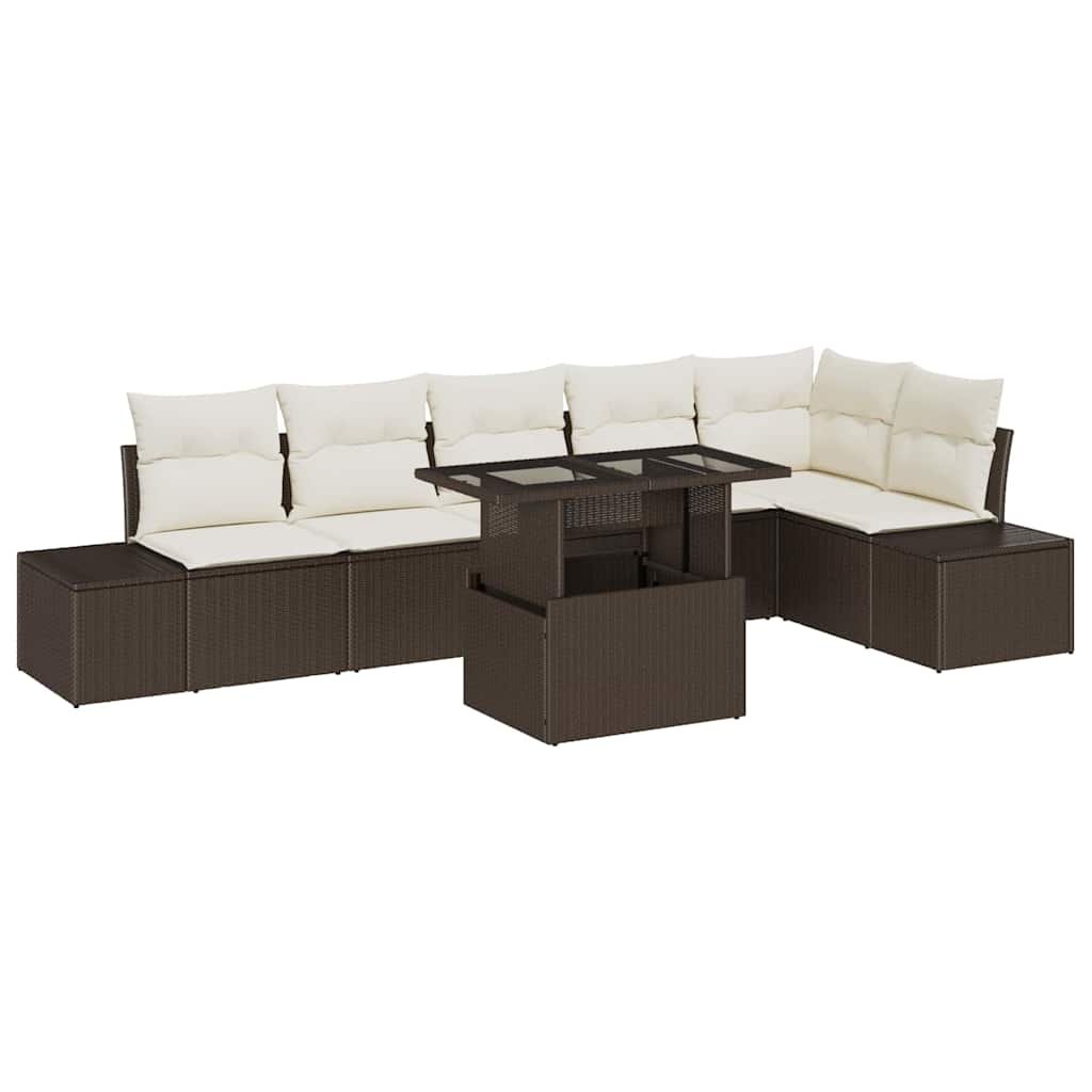Sada zahradních pohovek 7 pcs Hnědá a krémová 100 x 55 x 73 cm 3349194