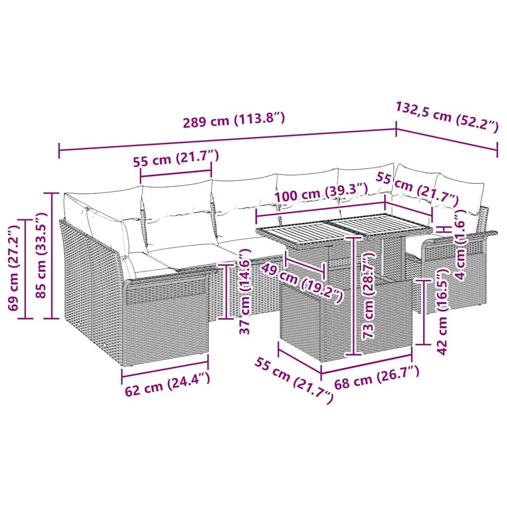 - Udržitelné materiály: Vyrobeno z odolného polyratanu, sada zahradního sofa nejenže dobře vypadá, ale také zaručuje dlouhověkost. Polyratan je známý svou odolností proti ultrafialovému záření, což zajišťuje, že sada si udrží svůj živý vzhled sezónu po sezóně. Robustní práškově lakovaný ocelový rám zajišťuje stabilitu a odolnost vůči povětrnostním vlivům. K přidání přirozeného tepla je použito masivní akáciové dřevo pro povrch, což spojuje funkčnost s atraktivním rustikálním nádechem.