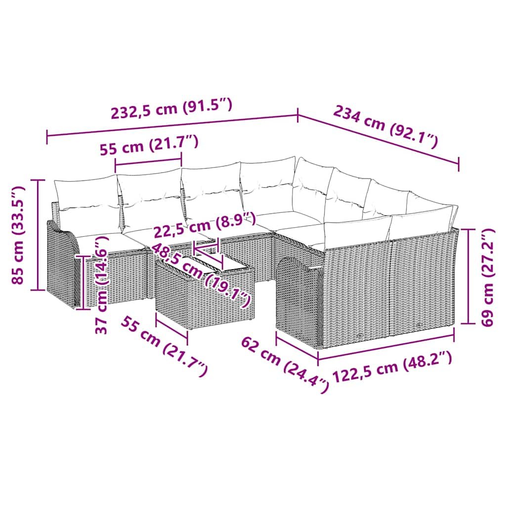 Sada zahradních pohovek 9 pcs Černá 55 x 55 x 37 cm Poly ratan 3345637