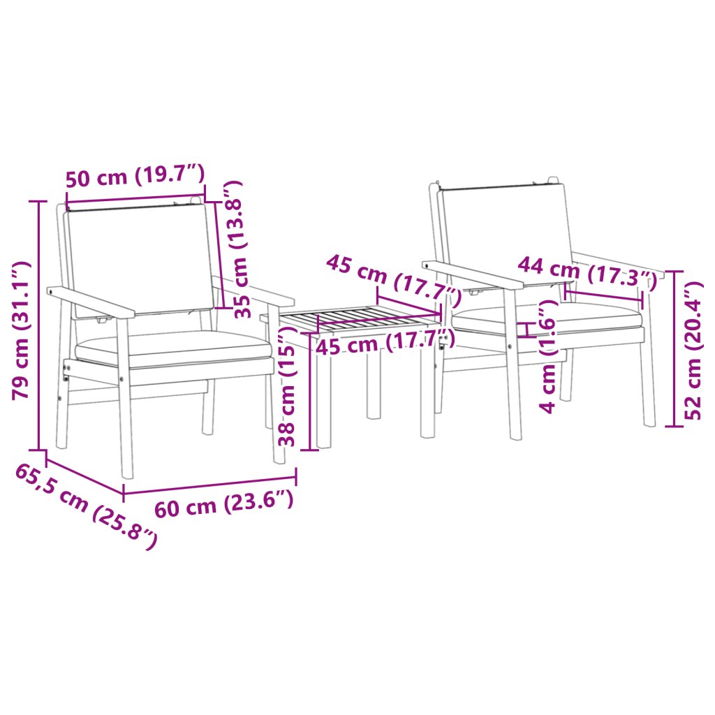 Sada zahradních pohovek s polštářem 3 pcs Hnědá 45 x 45 x 38cm 4106577