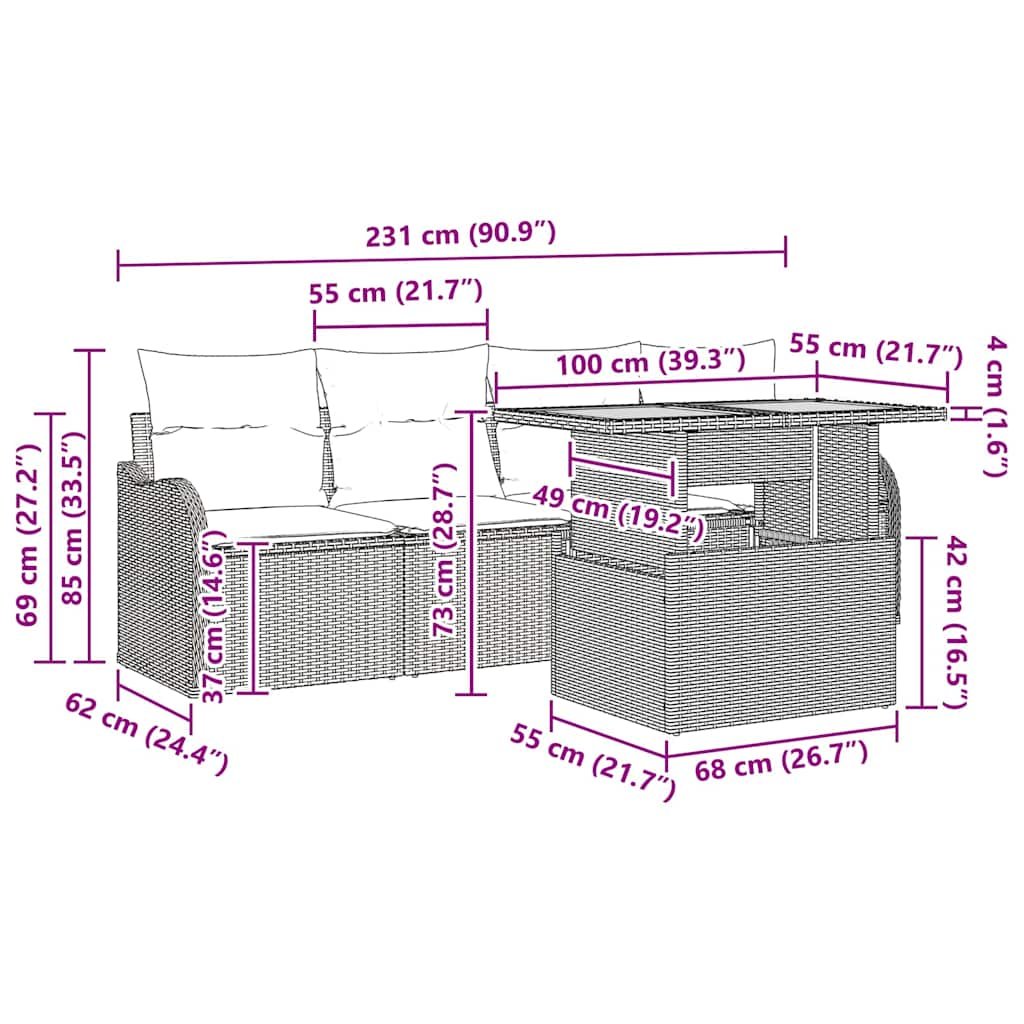 Tento skvělý zahradní set s polštáři spojuje moderní design a praktičnost, což z něj dělá super doplněk pro každý venkovní prostor. Má elegantní tvary a minimalistický nádech, s tkaným polyratanovým povrchem, který vypadá fakt skvěle. Je vzdušný a jeho struktura je ideální pro společenské akce nebo klidné večery venku, nabízející jak užitečnost, tak pohodlí pro ty zvláštní chvilky na zahradě nebo terase.