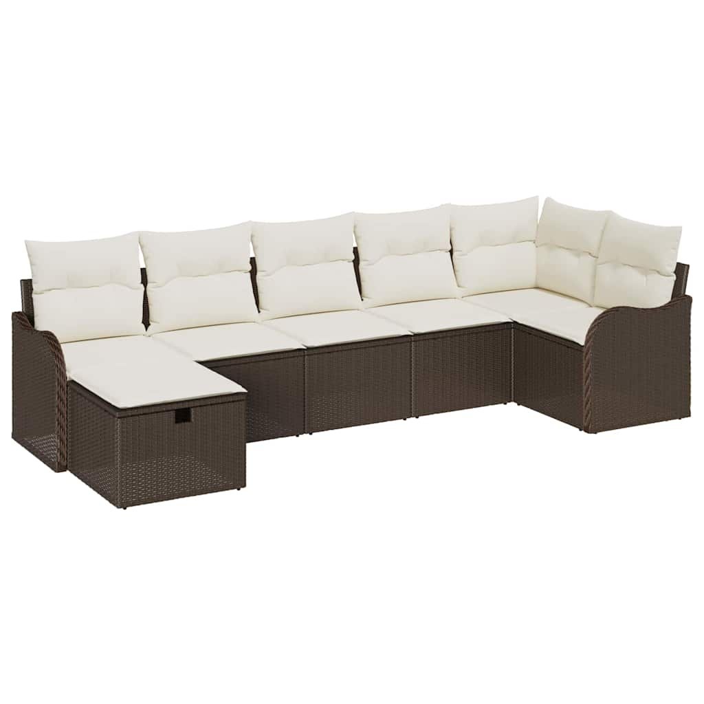 Sada zahradních pohovek s polštářem 7 pcs Hnědá a krémová 3358997