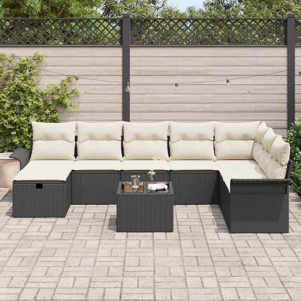 Sada zahradních pohovek s polštářem 9 pcs Černá a krémová 3358936