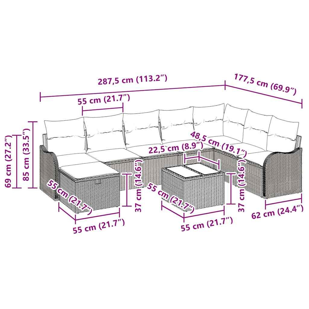 Sada zahradních pohovek s polštářem 9 pcs Hnědá a krémová 3359037
