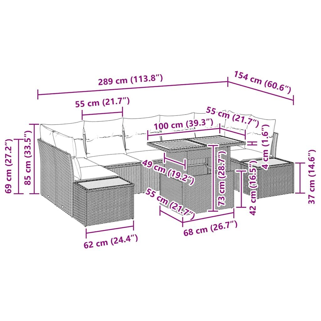 - 2 x boční sofa včetně úložné funkce, 2 x rohové sedadlo včetně úložné funkce, 3 x středové sedadlo včetně úložné funkce, 1 x zahradní stůl