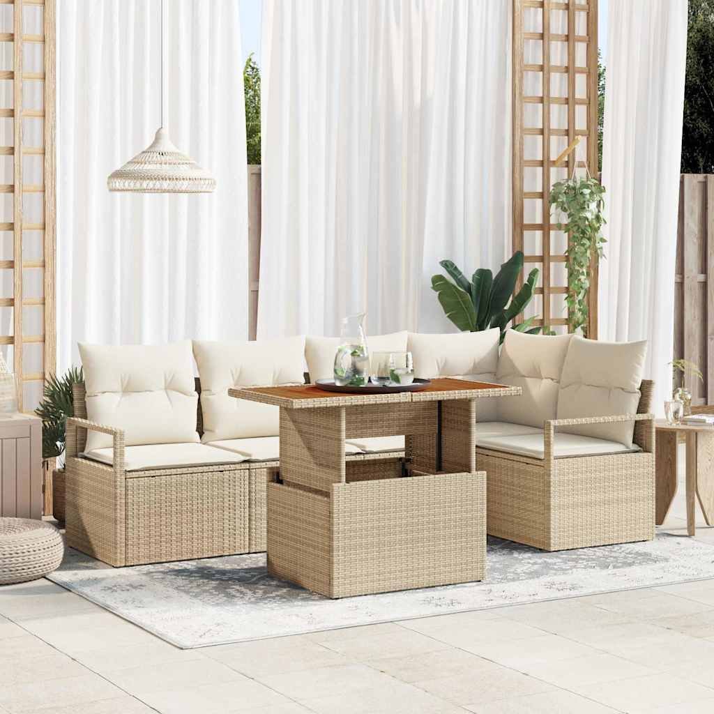 Zahradní jídelní souprava s polštářem 6 pcs Béžová a krémová 3349714